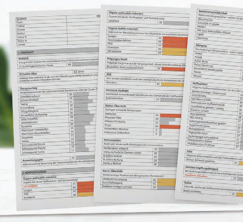 Mit der KörperEbenen MetAnalyse erhält man differenzierte Aussagen über Stoffwechsel-geschehen, Toxinbelastungen, Allergien und Unverträglichkeiten, sowie mentale, emotionale und körperliche Ursachen einer Krankheit.